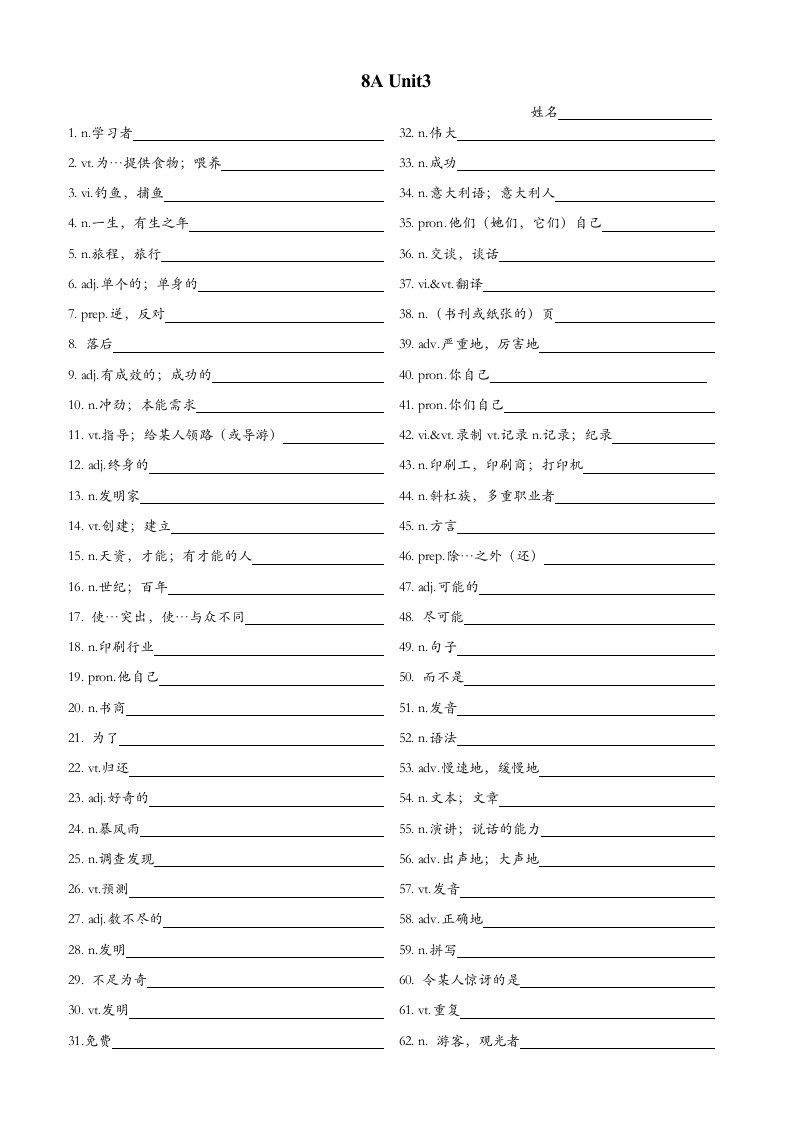 新版译林版初中英语八年级上册
